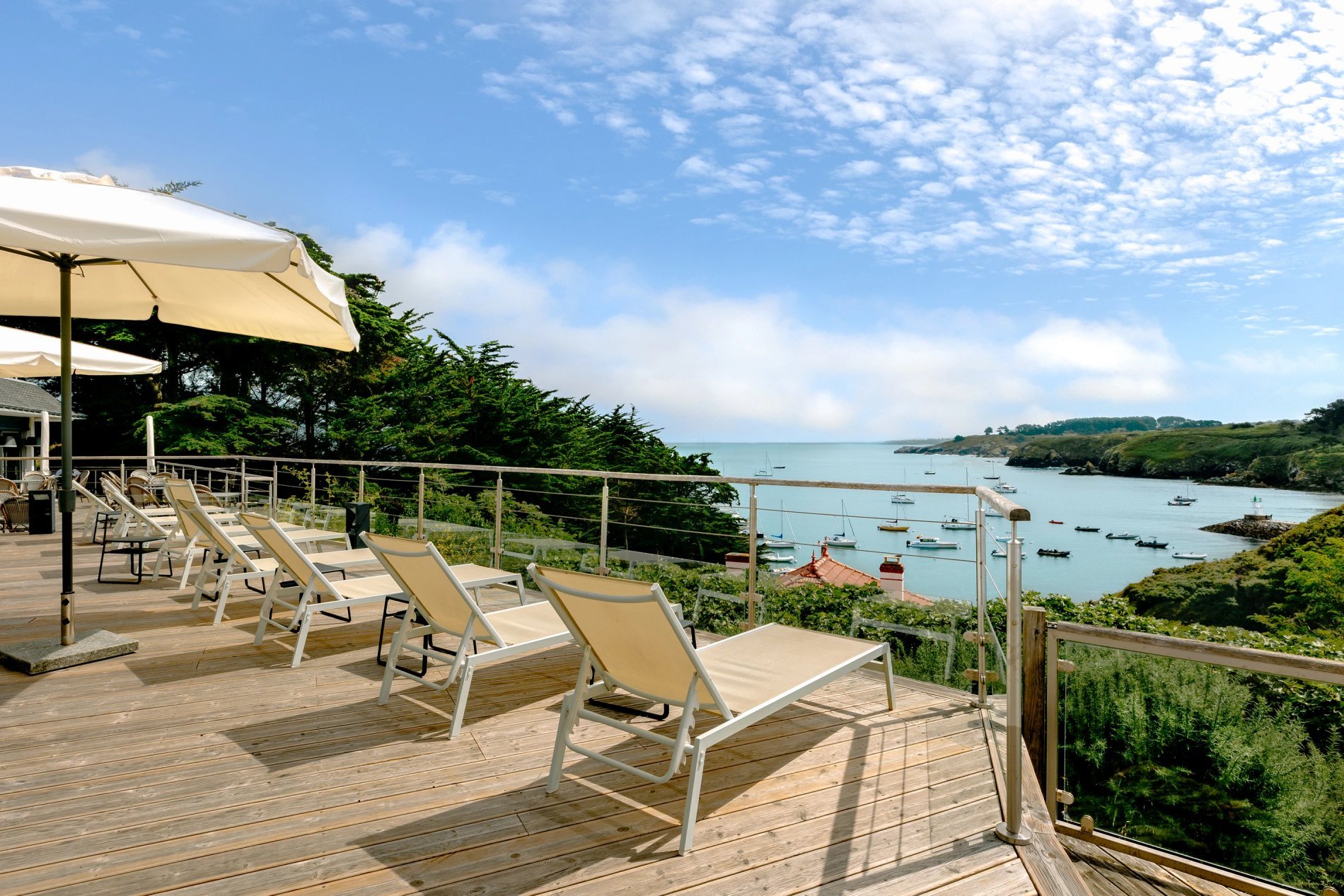 Tel un paquebot, notre hôtel de bord de mer jette son ancre devant le port de Sauzon. A travers ses grandes baies lumineuses d'où l'on peut compter les bateaux, on devine en enfilade la côte de Belle-Ile-en-mer, trésor de la Bretagne.